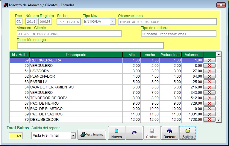 Genere la gua de remision con el volumen de cada paquete/bulto..